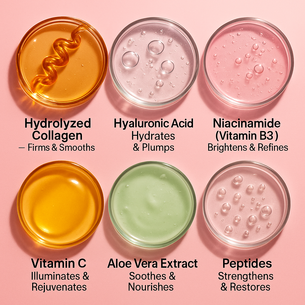 🌸 Boosts skin elasticity and firmness improves tone and tightness, restoring a lifted look.
